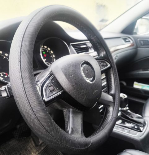 Bőrhatású szellőző kormányvédő – fekete színben, fehér belsővel 38 cm 23518BK-PRO
